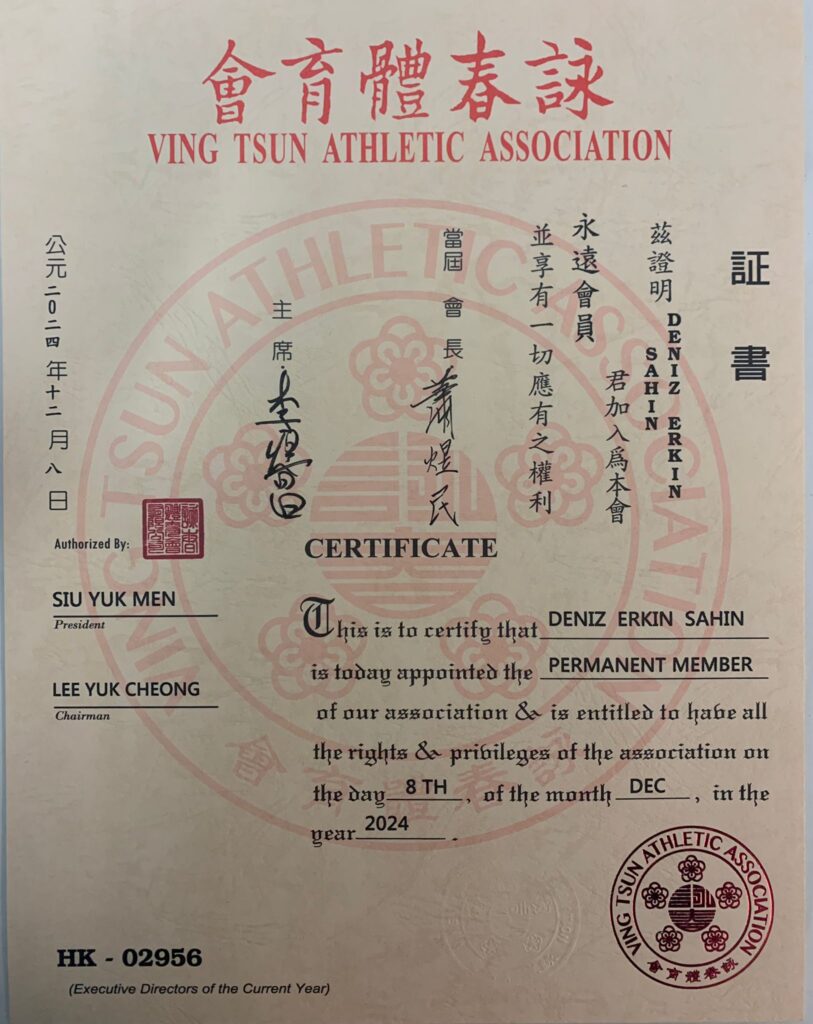 Trainer Sahin ist Mitglied in der Ving Tsun Athletic Association in Hong Kong.